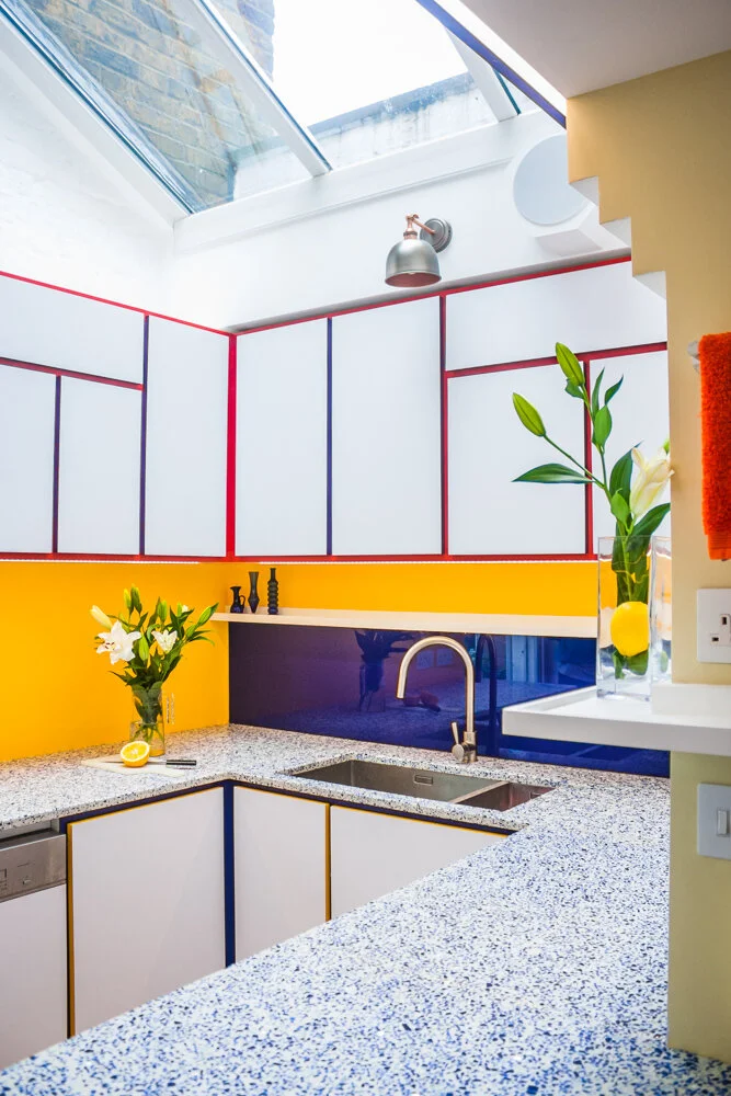 As much light as possible was brought into the two rooms and views of the church across the road were reflected back into the room by placing large mirrors along the back wall of the bathroom and by having mirrored doors on the bedroom wardrobe.
